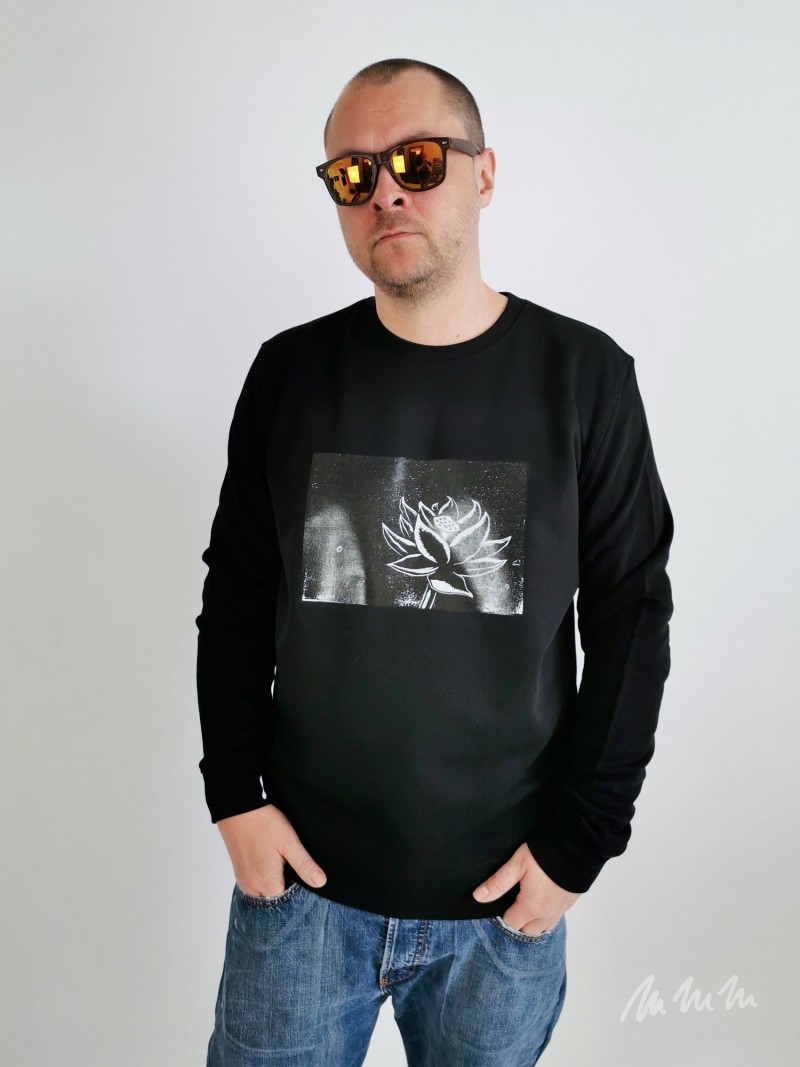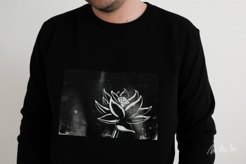 Biobavlněná Mikina s autorským motivem potisknutá ručním sítotiskem. Barvu potisku i motiv lze změnit. Napište nám do poznámky k nákupu.
