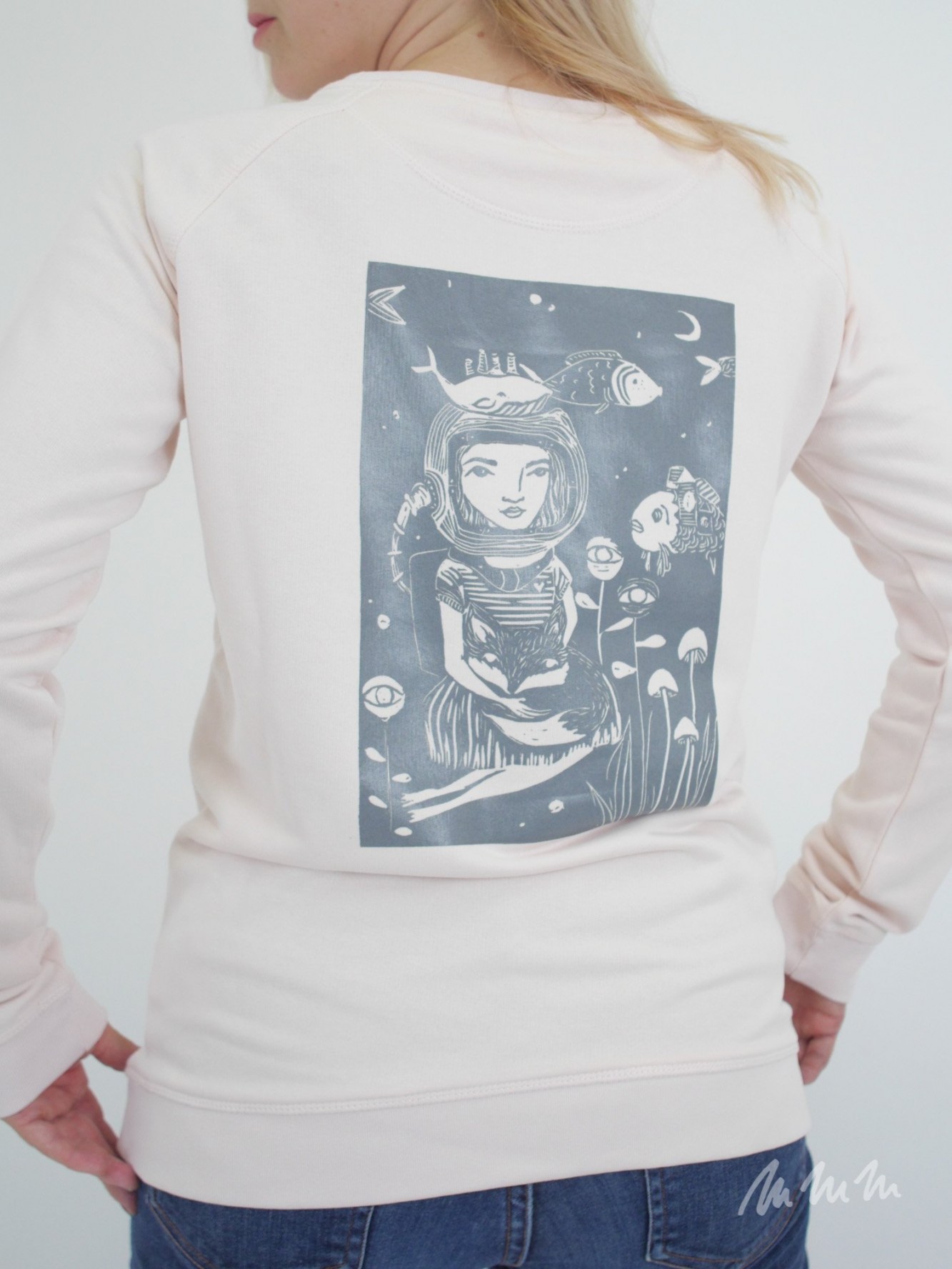 Biobavlněná Mikina s autorským motivem potisknutá ručním sítotiskem. Barvu potisku i motiv lze změnit. Napište nám do poznámky k nákupu.