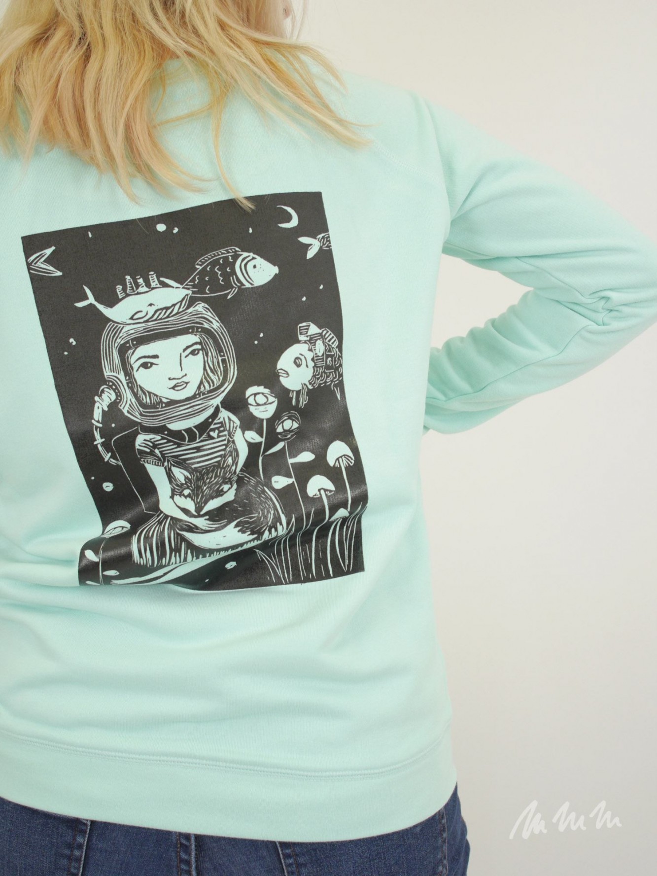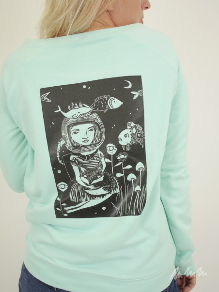 Biobavlněná Mikina s autorským motivem potisknutá ručním sítotiskem. Barvu potisku i motiv lze změnit. Napište nám do poznámky k nákupu.