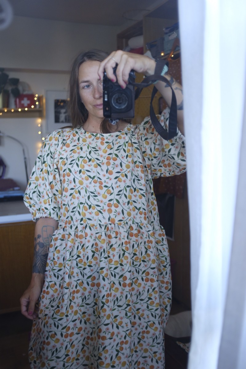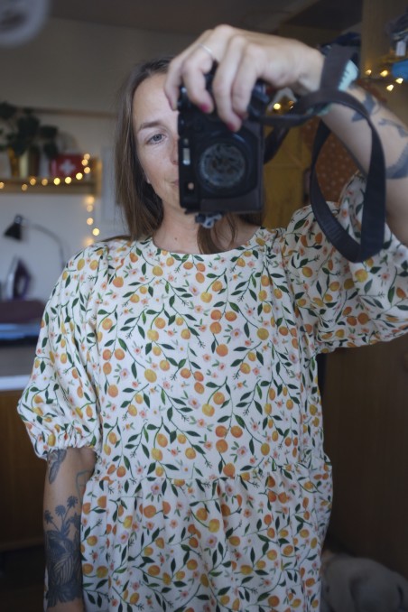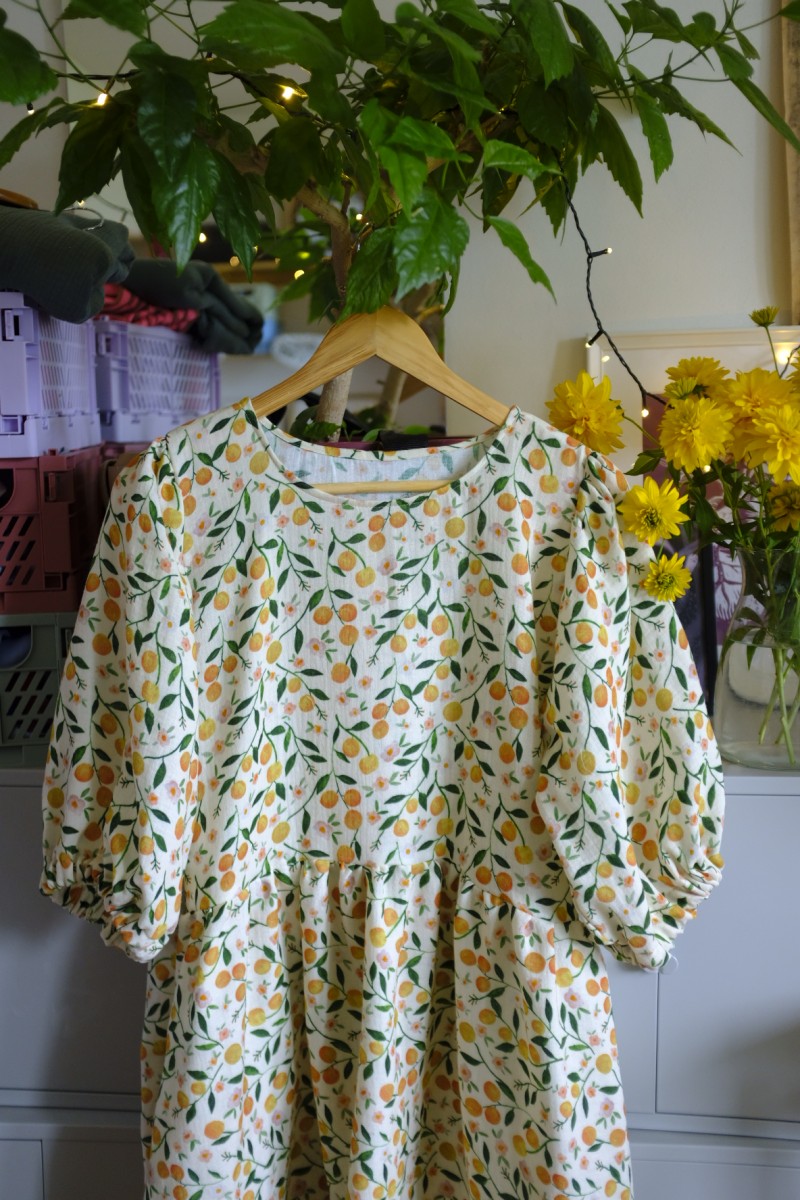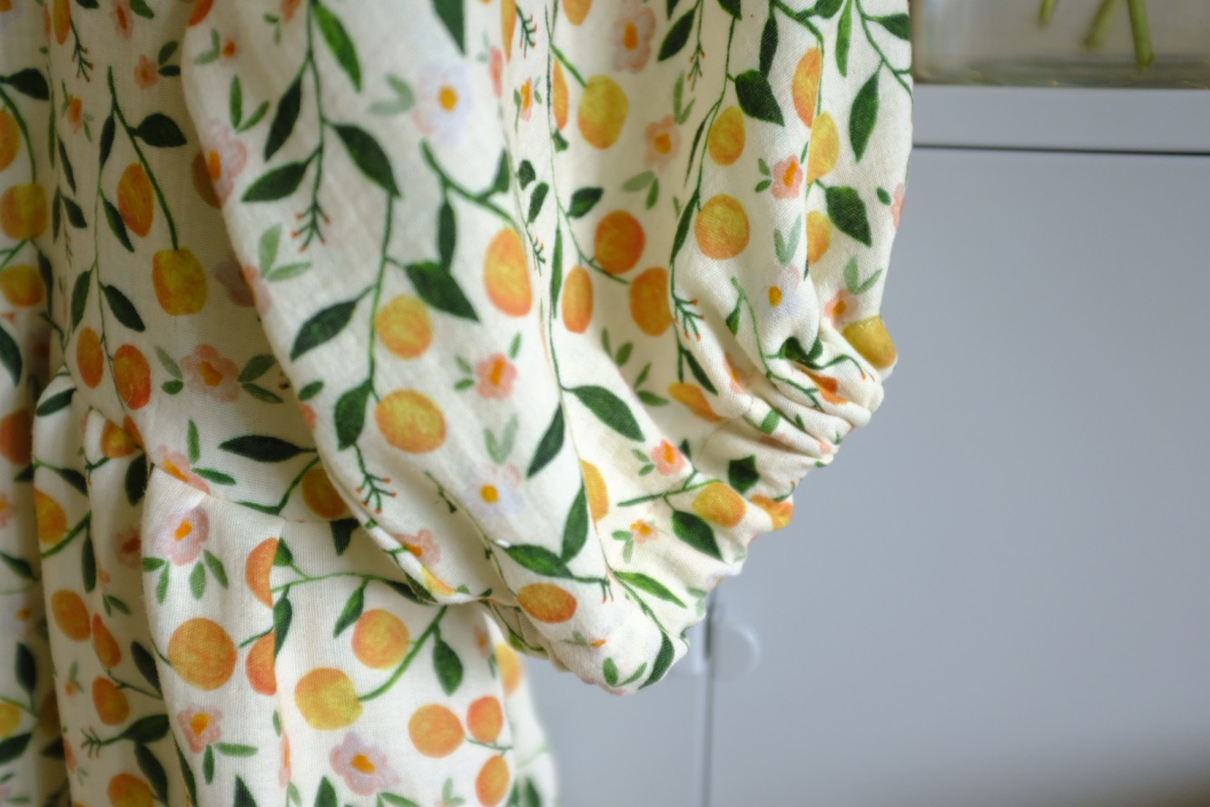 PUFF znamená, že jsou rukávy objemné a nařasené v ramenou. V lemu rukávu je gumička. V lemu ponechávám neprošité místečko, můžete si gumku případně vyměnit za větší nebo více utáhnout.