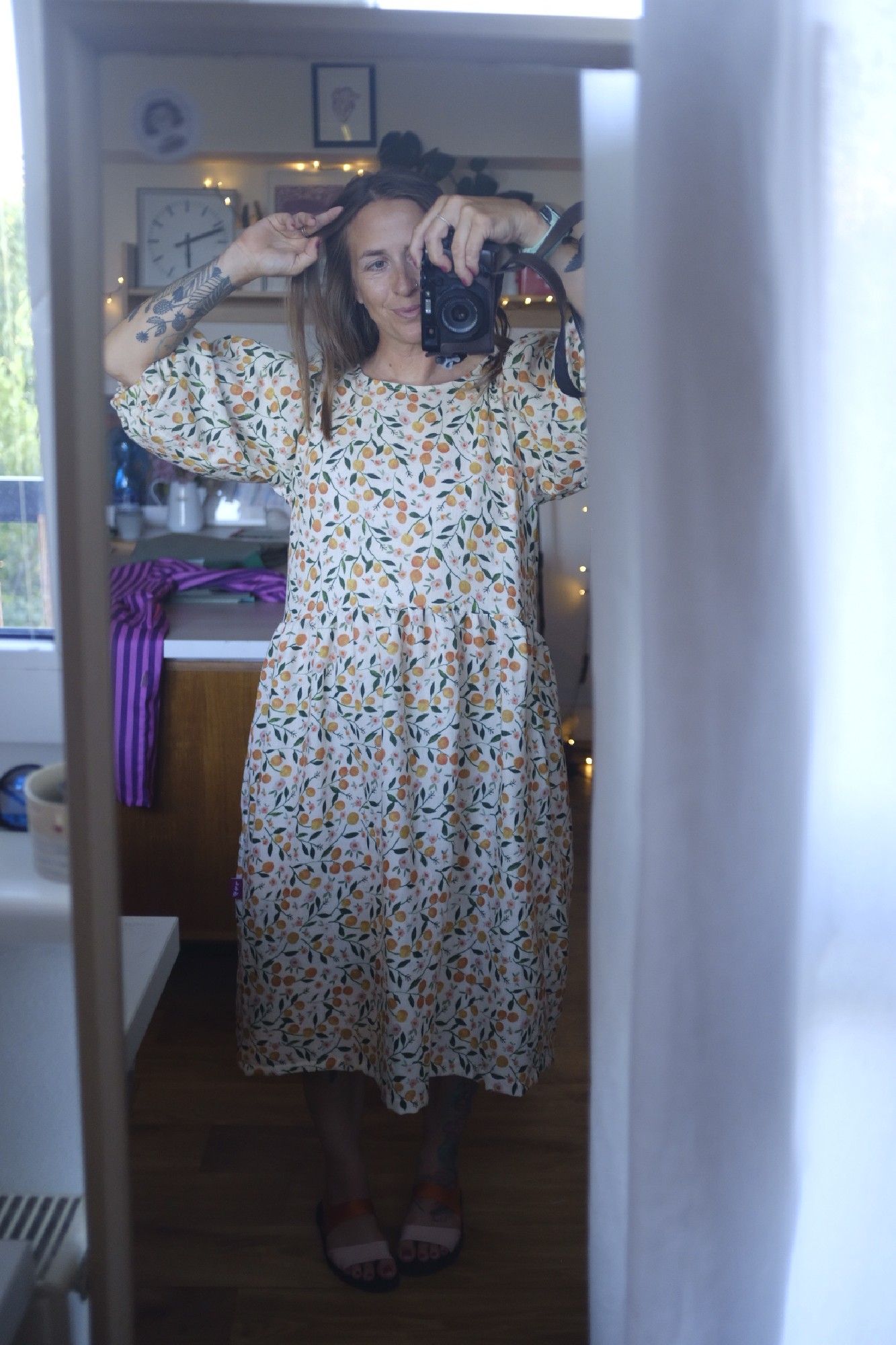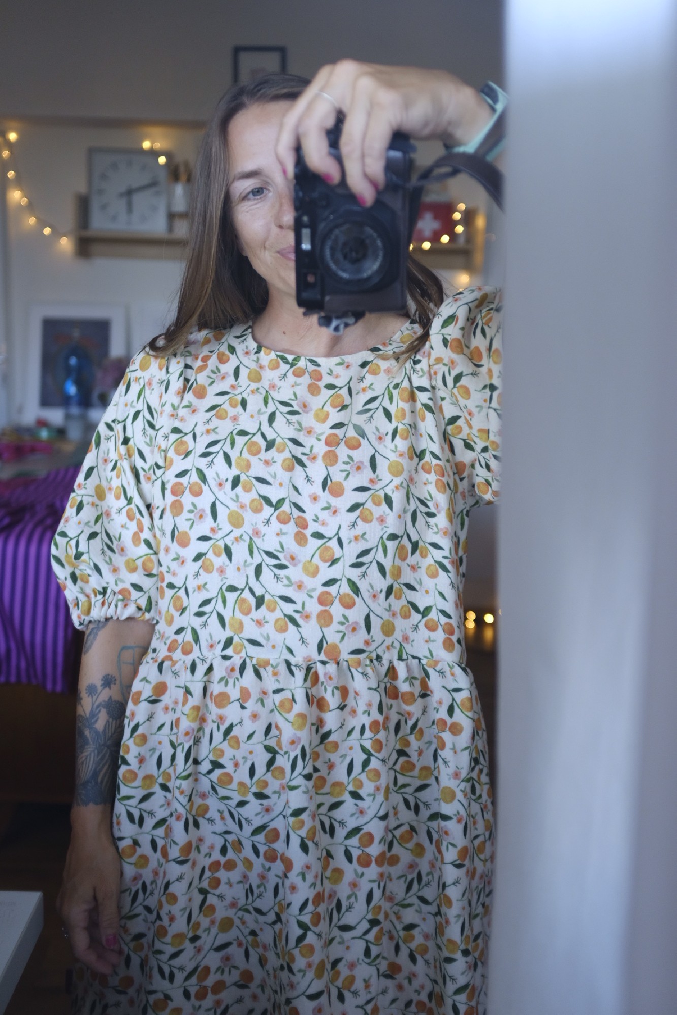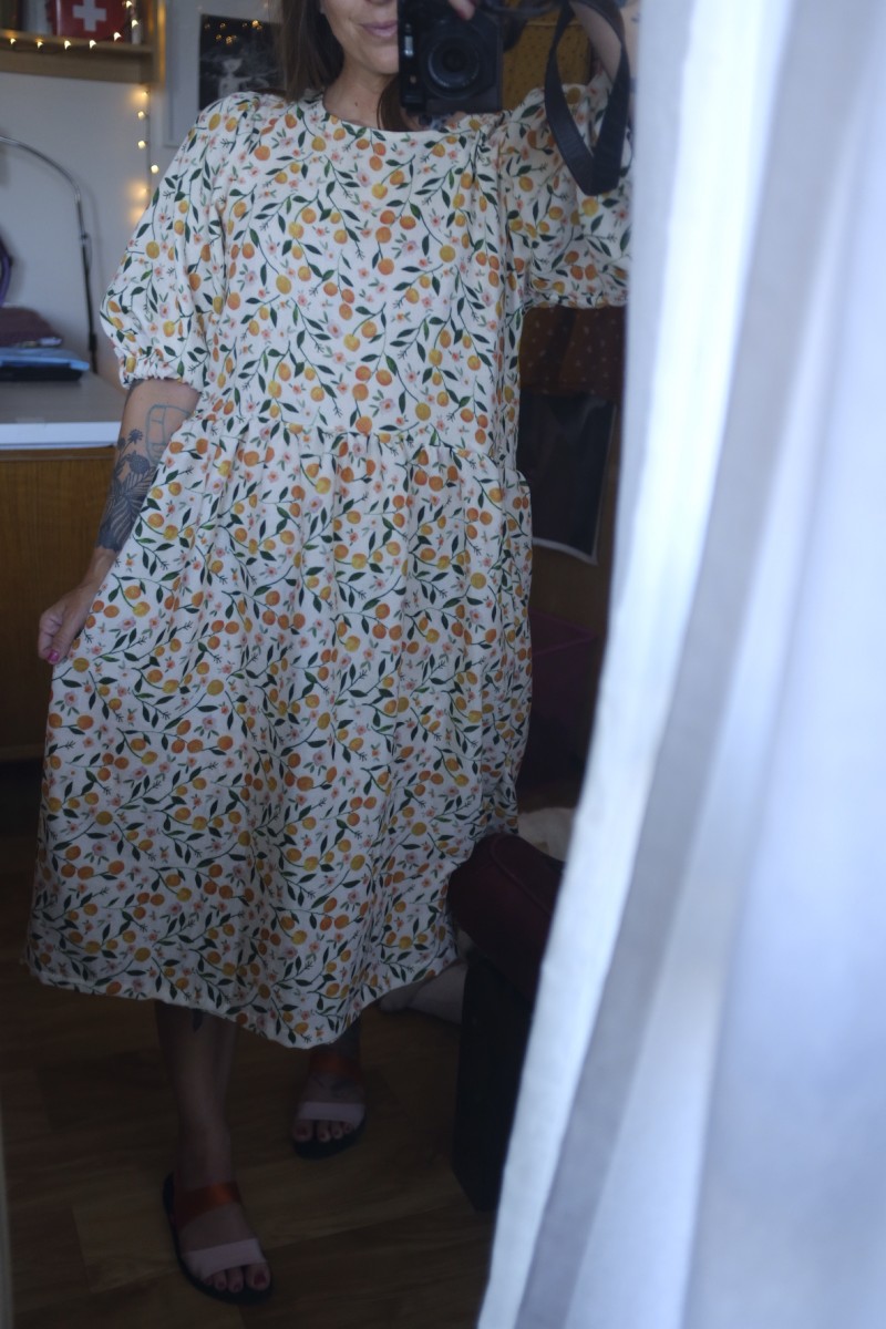 PUFF znamená, že jsou rukávy objemné a nařasené v ramenou. V lemu rukávu je gumička. V lemu ponechávám neprošité místečko, můžete si gumku případně vyměnit za větší nebo více utáhnout.