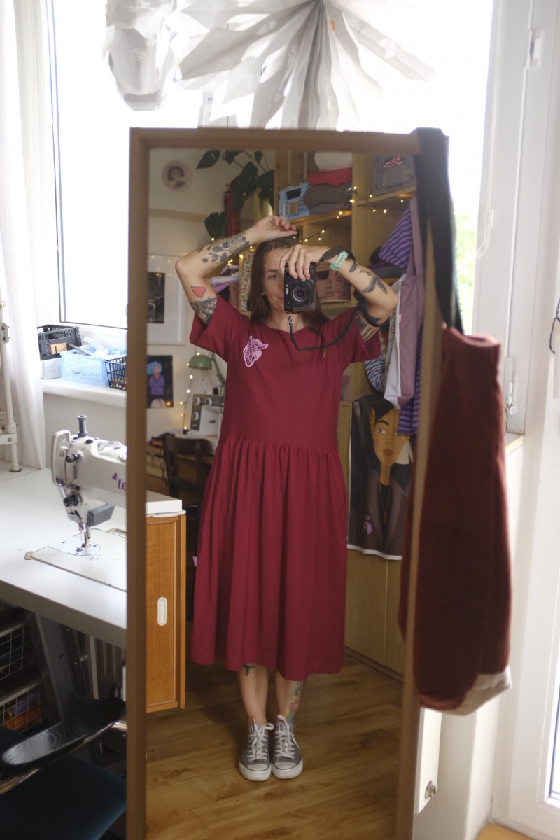 Mají klasické KRÁTKÉ rukávy. Šaty mají kapsy. Mají šňůrku na úvaz . Šaty jsou velmi pohodlné a schovají případné nedostatky díky nařasené spodní části šatů. Materiál je pružný. Pokud chcete šaty na tělo, volte velikost o velikost menší. Šaty jsou skladem.