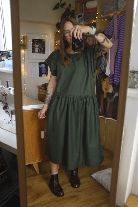 Merlot znamená, že šaty jsou složené z živůtku (vrchní díl šatů) a z řasené sukně. Ovšem pozor, padavé rukávy nemají klasické průramky jako klasický rukáv. Jsou spadlé a proto je v místě podpaží a poprsí více místa. Šířka živůtku se pak měří níž. Ne přes prsa, ale spíš v pase. Vhodný střih pro ty co mají větší paže a poprsí. Šaty jsou velmi pohodlné a schovají případné nedostatky díky nařasené spodní části šatů. Pokud jste těhotná, doporučuji si napsat o kratší živůtek. Šaty mají kapsy. Mají šňůrku na úvaz.