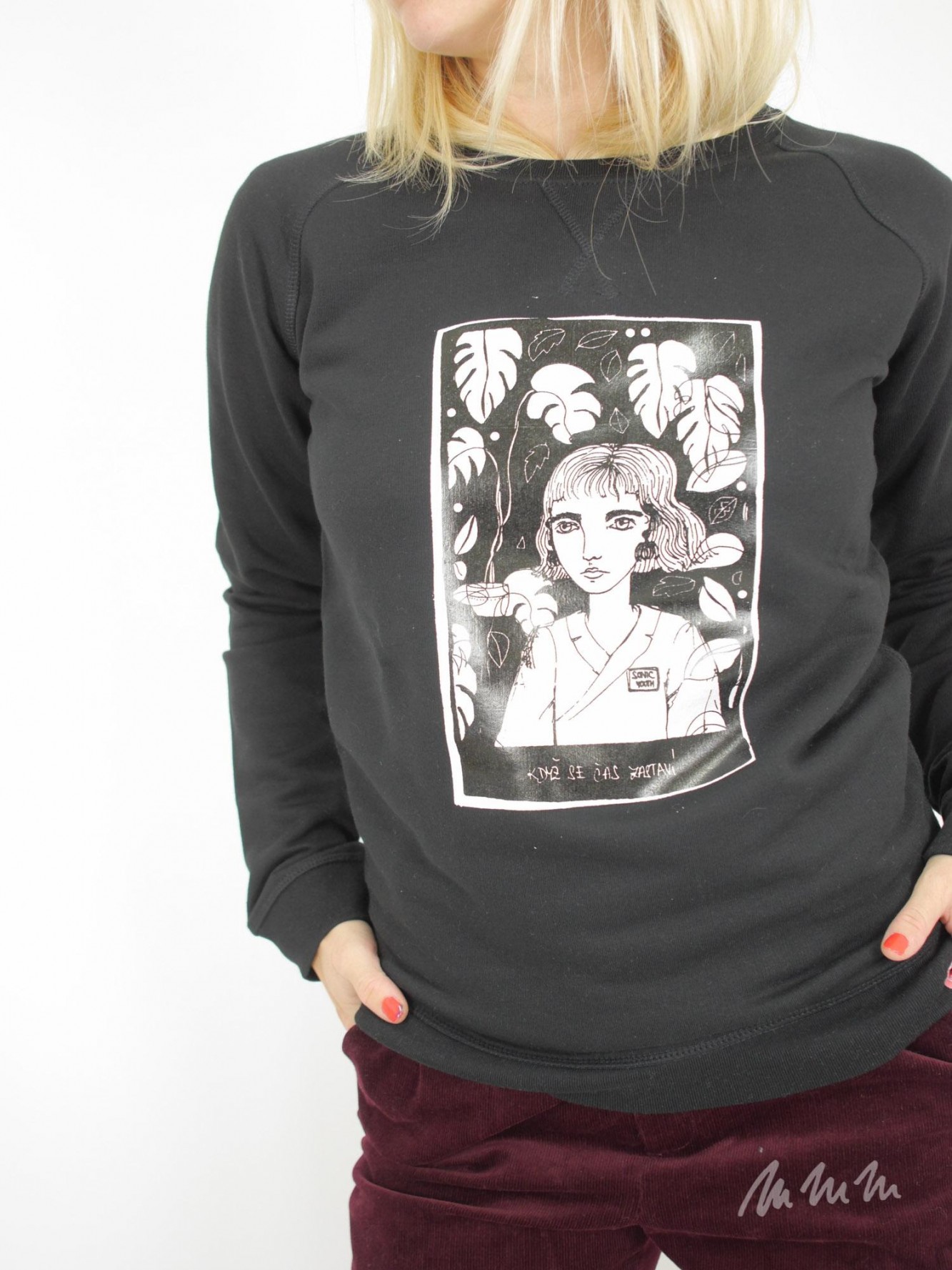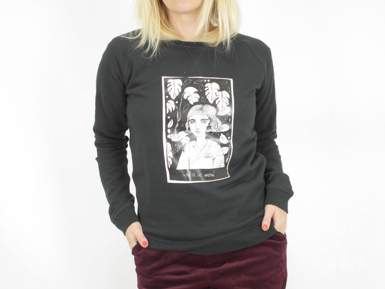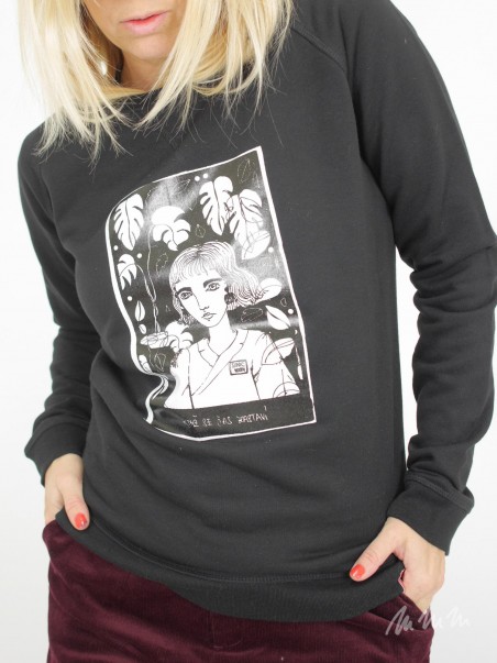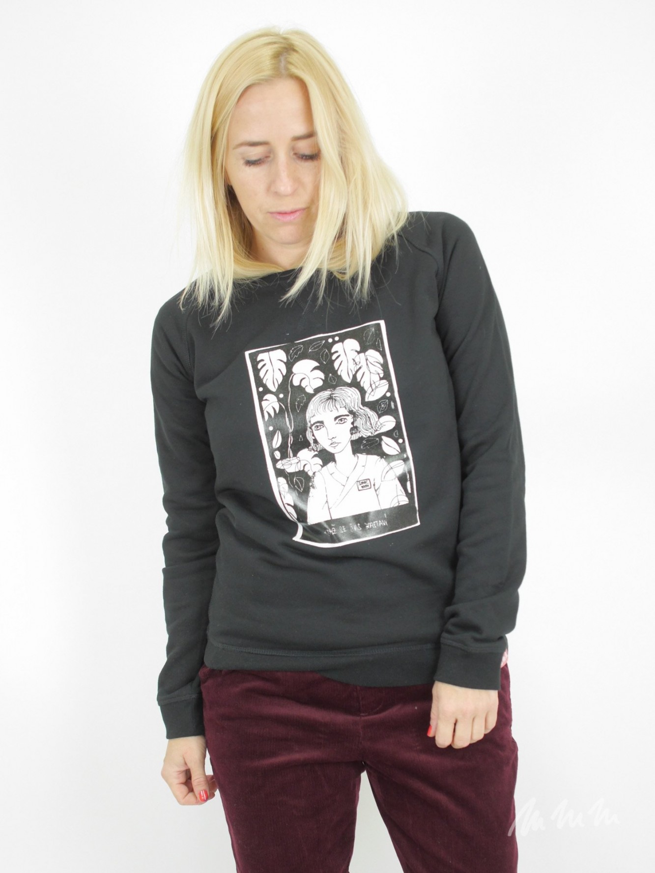 Biobavlněná Mikina s autorským motivem potisknutá ručním sítotiskem. Barvu potisku i motiv lze změnit. Napište nám do poznámky k nákupu.