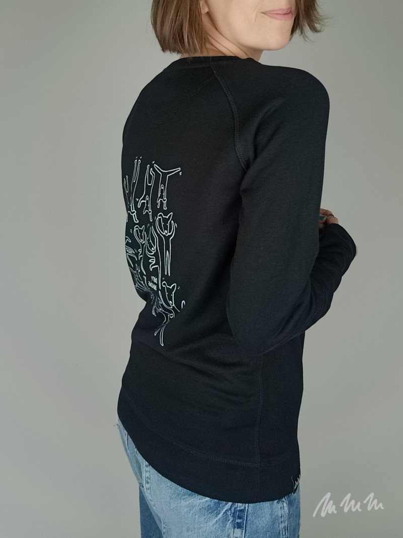 Biobavlněná Mikina s autorským motivem potisknutá ručním sítotiskem.