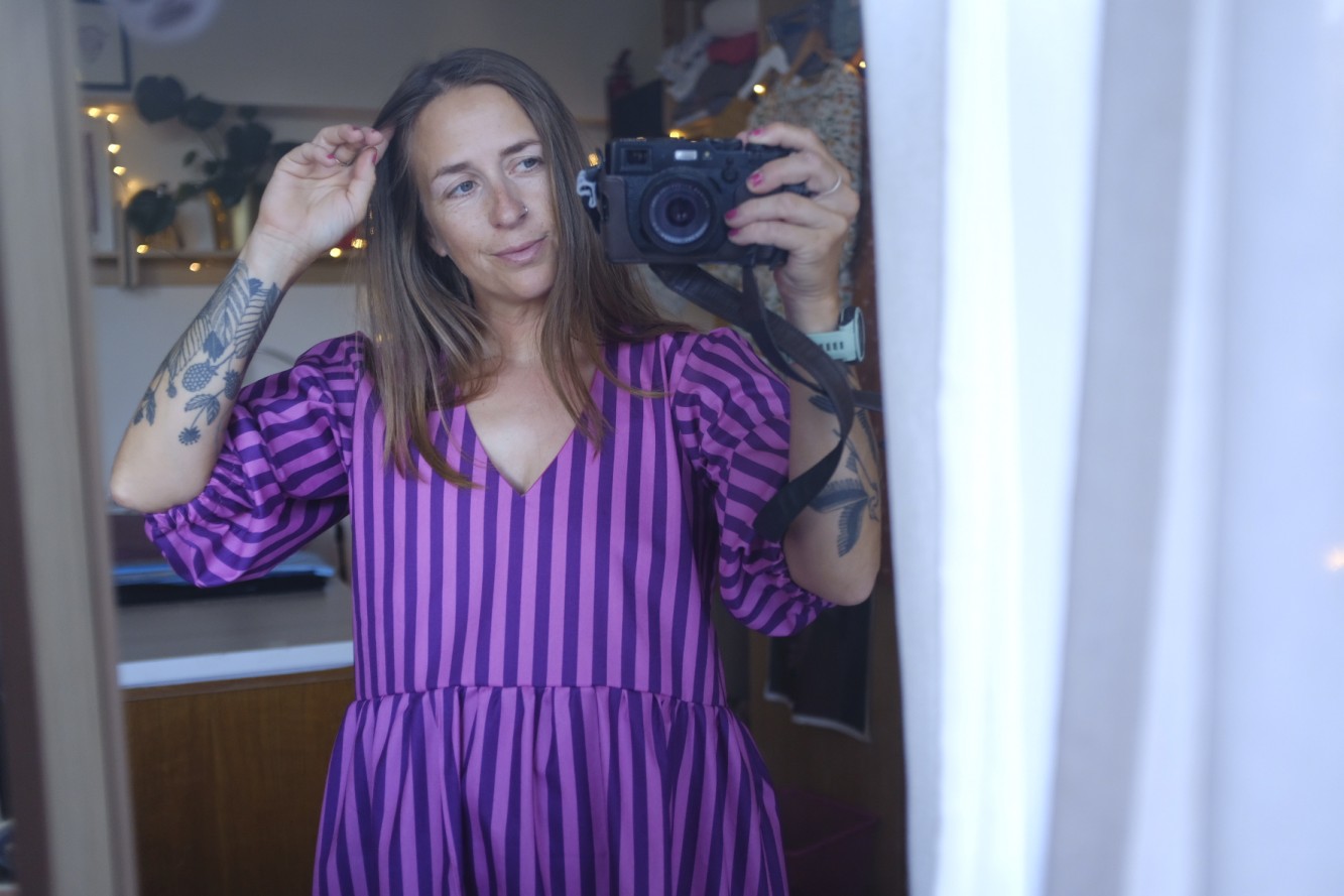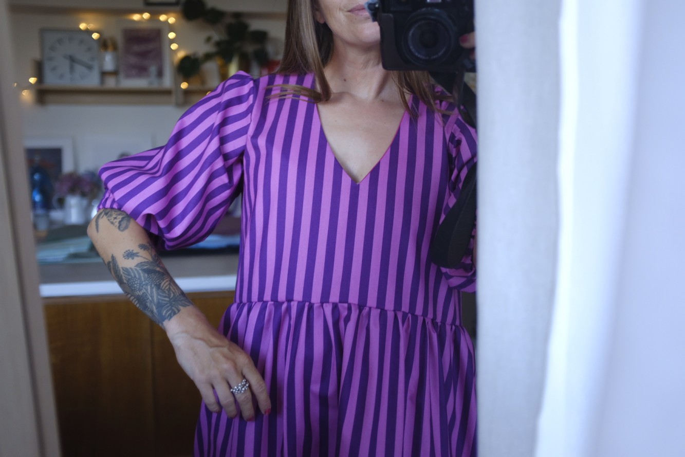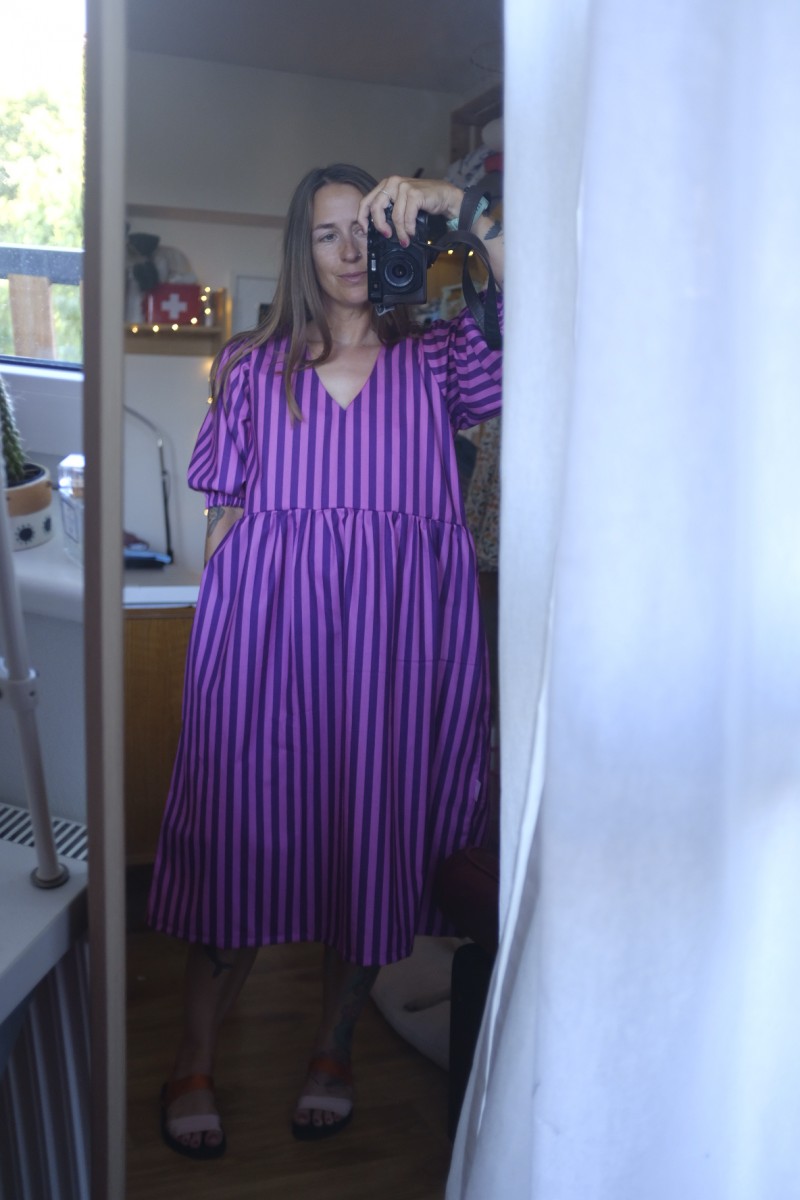 Speciální Skladem Šaty Vendy Puff Purple Stripes
