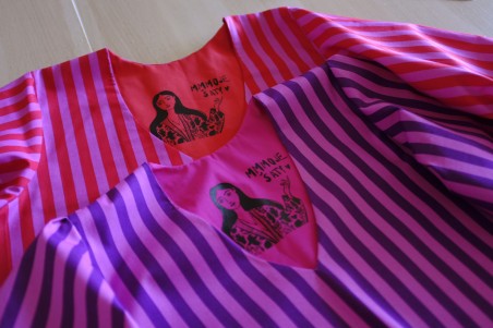 Merlot znamená, že šaty jsou složené z živůtku (vrchní díl šatů) a z řasené sukně. Rukávy jsou objemné a nařasené v ramenou. V lemu rukávu je gumička. V lemu ponechávám neprošité místečko, můžete si gumku případně vyměnit za větší nebo více utáhnout. Šaty mají kapsy. Vendy mají kratší živůtek.